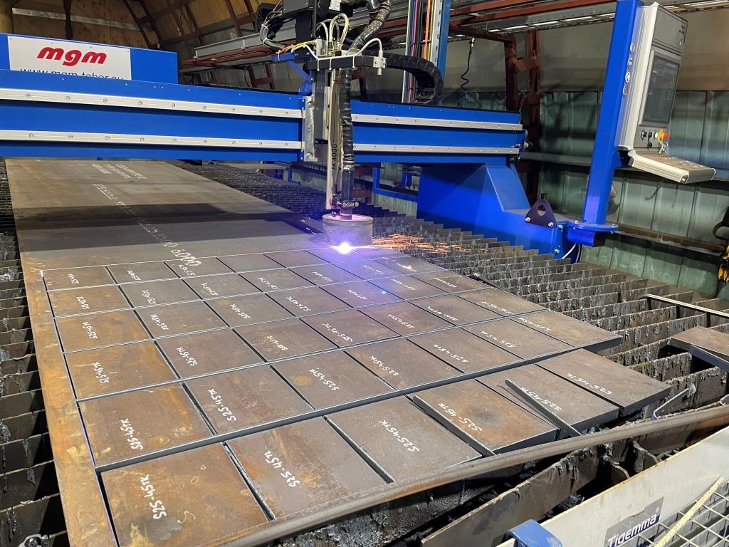 Для плазменной резки металла мы используем станок MGM с источником Hypertherm XPR 170. Размер рабочего стола составляет 6000х2000 мм. Допустимая толщина металла в случае плазменной резки составляет от 1 мм до 30 мм. Для более толстых материалов мы можем предложить услугу газовой резки, которая обеспечивает резку металла толщиной до 300мм.